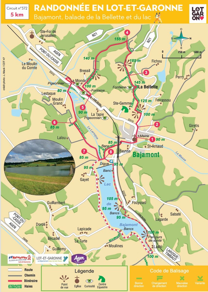 Dénivelée cumulée : 130 m. Le circuit s’élève progressivement dans les coteaux boisés de la Bellette, offrant de vastes points de vue.