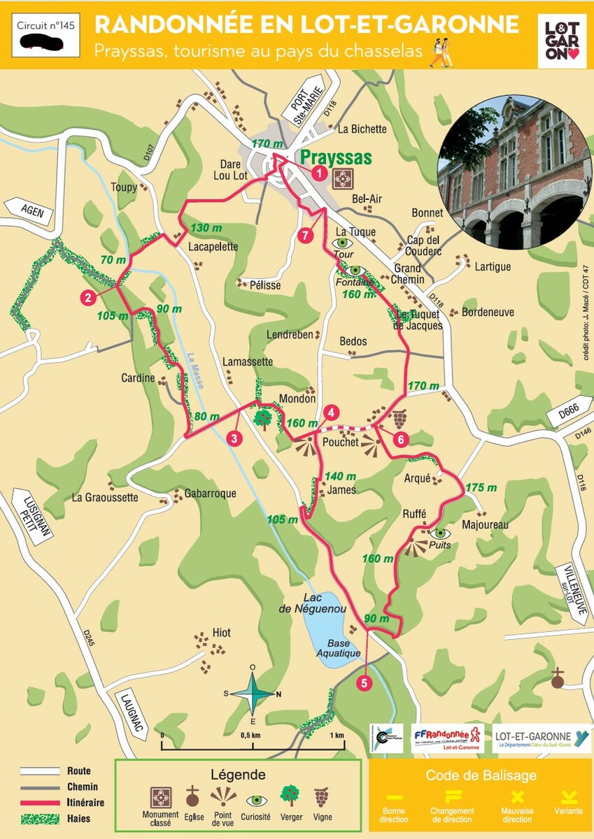 Dénivelée cumulée :170 m. La cité médiévale de Prayssas, aux contours arrondis, fait la fête aux fruits chaque été. Cette randonnéepasse par des chemins assez souvent ombragés.