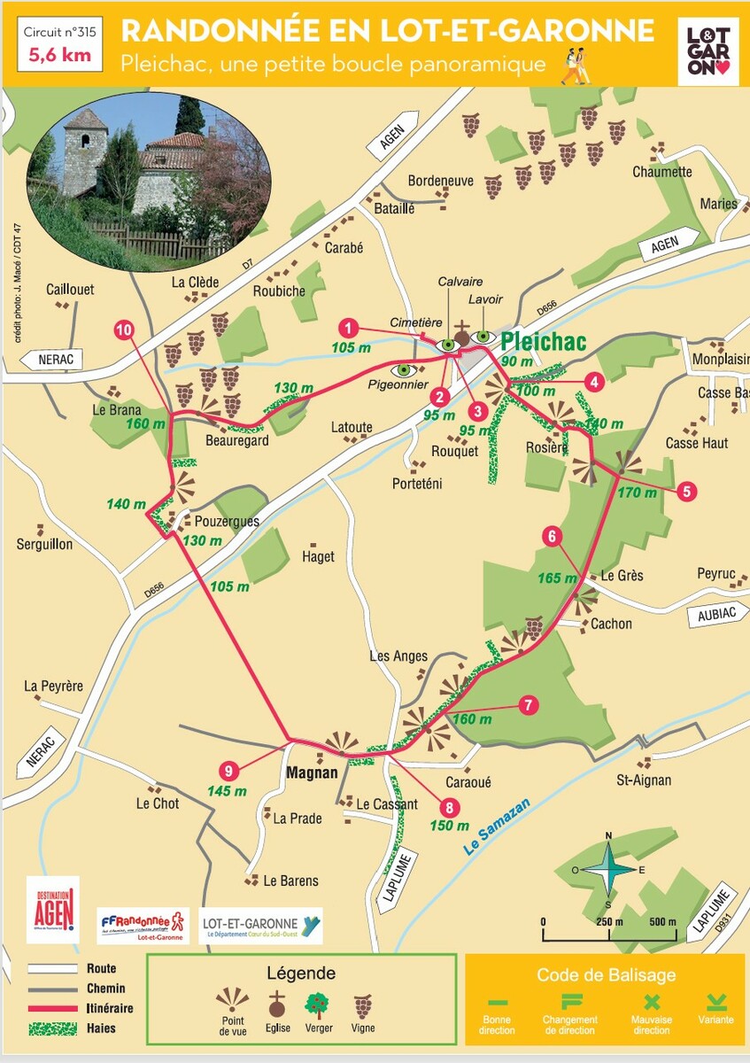 Dénivelée cumulée : 160 m. Cette balade entre bois, vergers et vignobles offre plusieurs points de vue sur les châteaux de Roquefort et d’Estillac, mais aussi sur les villages promontoires tels que Laplume et Moncaut..